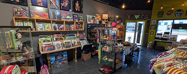 If you are an artist and interested in showing your work in one of our shows visit our Gallery Events Page for a list of upcoming shows or you can sign up for our mailing list for details and deadlines. We also have a curated space for vintage treasures. Pandacircus Vintage located inside of the tattoo shop and gallery has a dedicated space in the front of the shop to showcase all the fun and funky treasures Amanda aka @pandacircusvintage finds! We have a little bit of everything from clothing, nick-knacks, jewelry, and housewares ranging from 1950's-Y2k 2000's ! ![]() ![]() ![]() ![]() ![]()